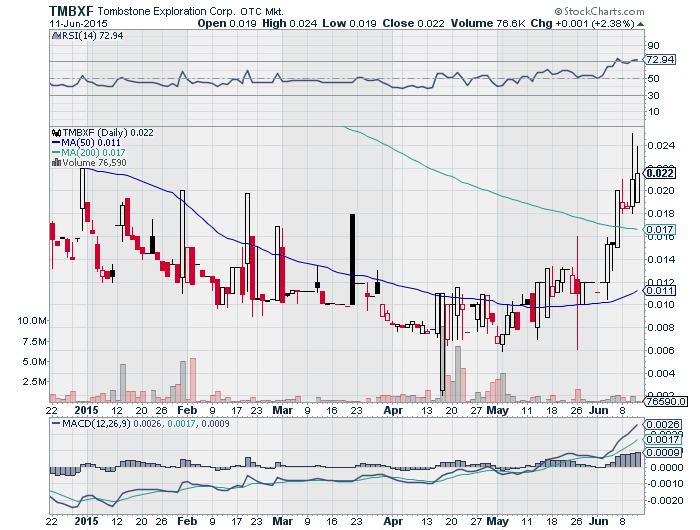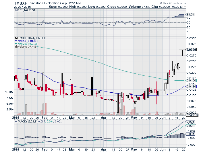 Phoenix, AZ - 29.März, 2012 - Tombstone Exploration Corporation (OTCBB:TMBXF) (OTCQB:TMBXF) (Frankfurt: A0MK8E) hat heute bekannt gegeben, dass das Unternehmen eine Bewilligung für staatliche Explorationsgenehmigungen für Mineralien erhalten hat, einschließlich Gold, Silber und Kupfer am östlichen Rand des Tombstone Mining Districts. Die zusätzlichen Genehmigungen, wenn bewilligt, schließen 2.163 Morgen in Cochise County, Tombstone, Arizona ein, angrenzend an das zu 100 % unternehmenseigene Zebra-Grundstück über 2.000 Morgen.