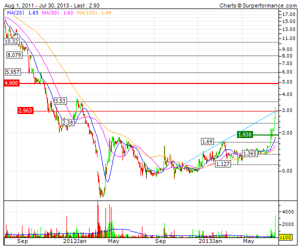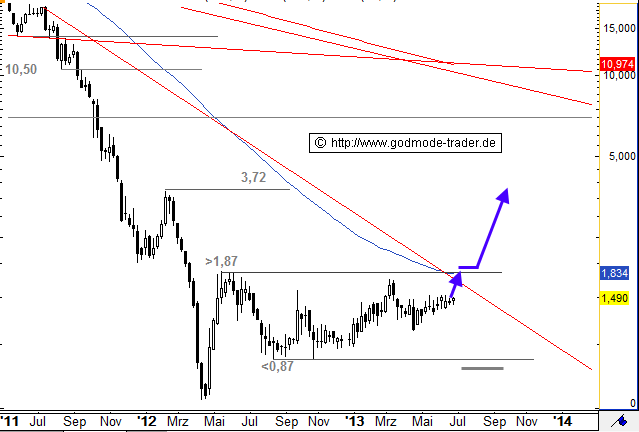 Kursverlauf vom 17.12.2010 bis 26.06.2013 (log. Kerzendarstellung / 1 Kerze = 1 Woche)