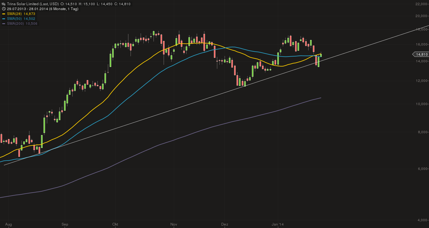 Shares of solar energy companies are rebounding after dropping sharply on Friday. Today's bounce came after Deutsche Bank wrote that China is not reducing its 2014 solar energy target, as had been reported on Friday. WHAT'S NEW: Bloomberg reported on Friday that China had decided to reduce its solar energy generation target to 10 gigawatts from 14 gigawatts, Deutsche Bank analyst Vishai Shah stated in a note to investors earlier today. However, Shah says hat the country is actually maintaining its 14 gigawatt target. A press release from China's National Energy Administration, upon which the Bloomberg story had been based, referred to previous targets, Shah indicated. Moreover, solar projects in China are being approved without regard to quotas and China exceeded its 2013 solar energy target by a significant amount, added the analyst. He reiterated Buy ratings on Trina Solar (TSL), Yingli Green Energy (YGE), and SolarCity (SCTY). PRICE ACTION: In early trading, Trina Solar jumped 5% to $14.30, Yingli Green rallied 5.3% to $6.17, SolarCity advanced 1% to $71.10, JinkoSolar (JKS) gained 2.5% to $40.45, Canadian Solar (CSIQ) rose 3.7% to $38.65, and First Solar (FSLR) climbed 2.6% to $49.90.