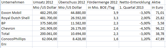 Die Rangliste führten wie schon im Jahr 2011 die Ölkonzerne Royal Dutch Shell und BP an.
