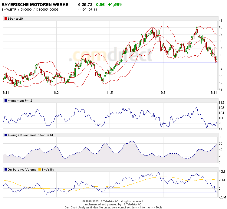 Also Lanfristinvestment machst Du denke ich nicht´s falsch. Wenn Du willst, kannst Du abwarten ob die Unterstützung bei 35 € hält. Ab 36,50 € wäre der Titel dann aus technischer Sicht auch wieder positiv zubeurteilen. Also entweder Du kauft jetzt oder Du wartest noch nächste Woche ab ob die Aktie die 35 € hält, falls sie es nicht tut könnte man bis 32 € zurückkommen ... Aber beim Langfristinvestment denke ich machst Du momentan keinen Fehler wenn Du jetzt kauft!
