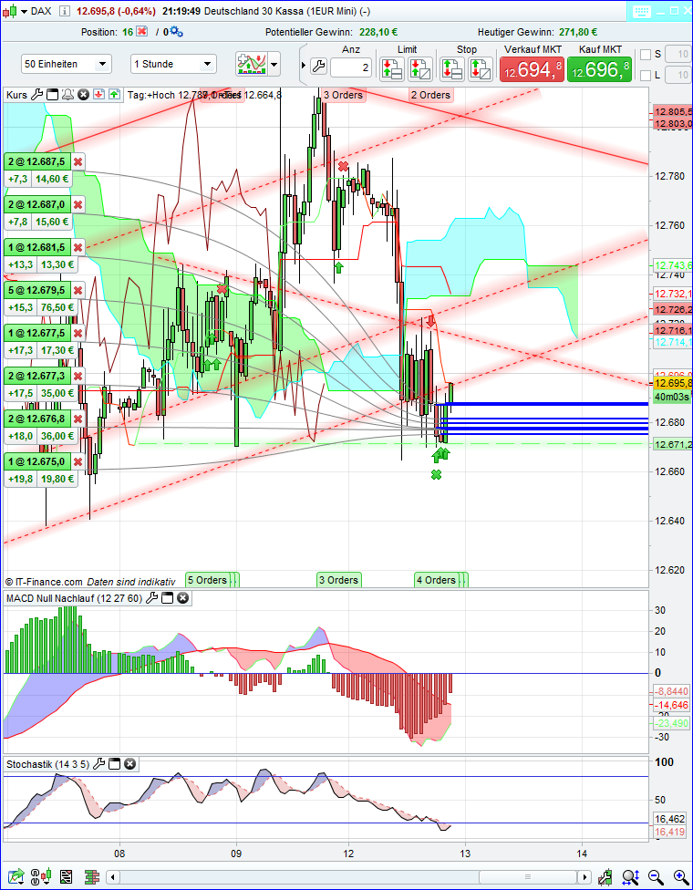 long auf 13000, ,,wenn noch ueberhaupt", in den untergeordneten Zeitebenen, die aber auch schon, zu wackeln scheinen. d.h., roccos 12500/490 werden kommen, dort haben sich eine Menge Käufer platziert, aber der Langzeitkinjun liegt auf lange Sicht bei 12039, noch steht der Tenkan auf long zum Kinjun, deshalb meine Annahme noch long,