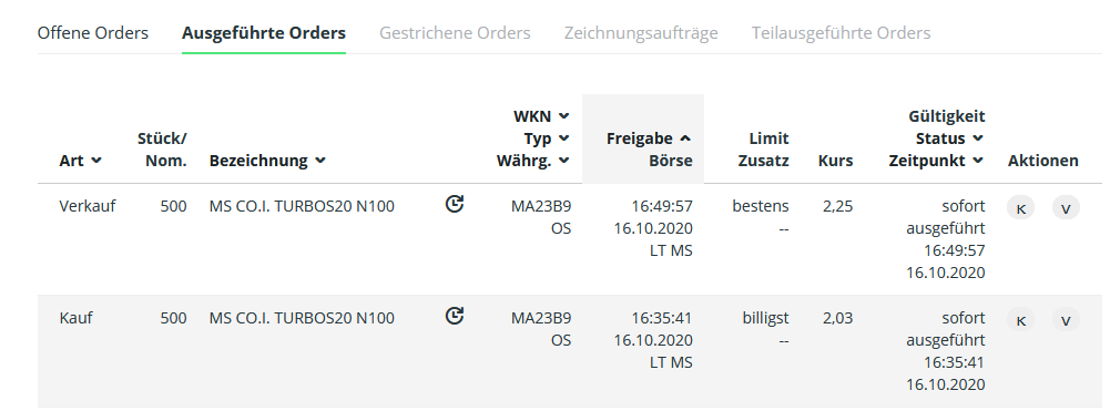 VK-Kurs war im ShortSchein 2,25, Tageschlusskurs des Scheins 3,44.