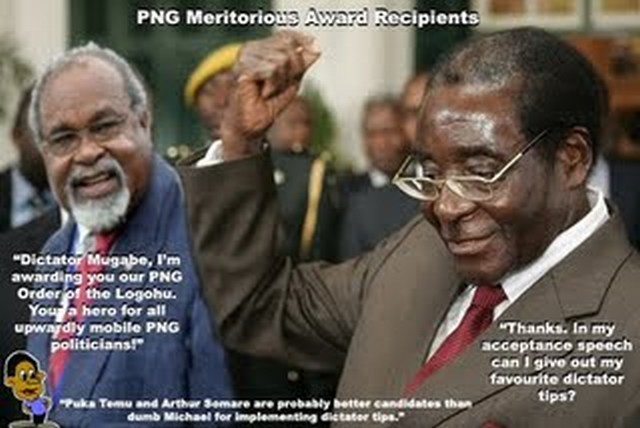 The citizens of Papua New Guinea have jokingly been comparing the state of their Nation with the corruption riddled dictatorship of Robert Mugabe in Zimbabwe for several years now and drawing parallels between the longevity of the reign of PM Michael Somare and the African state’s leader.