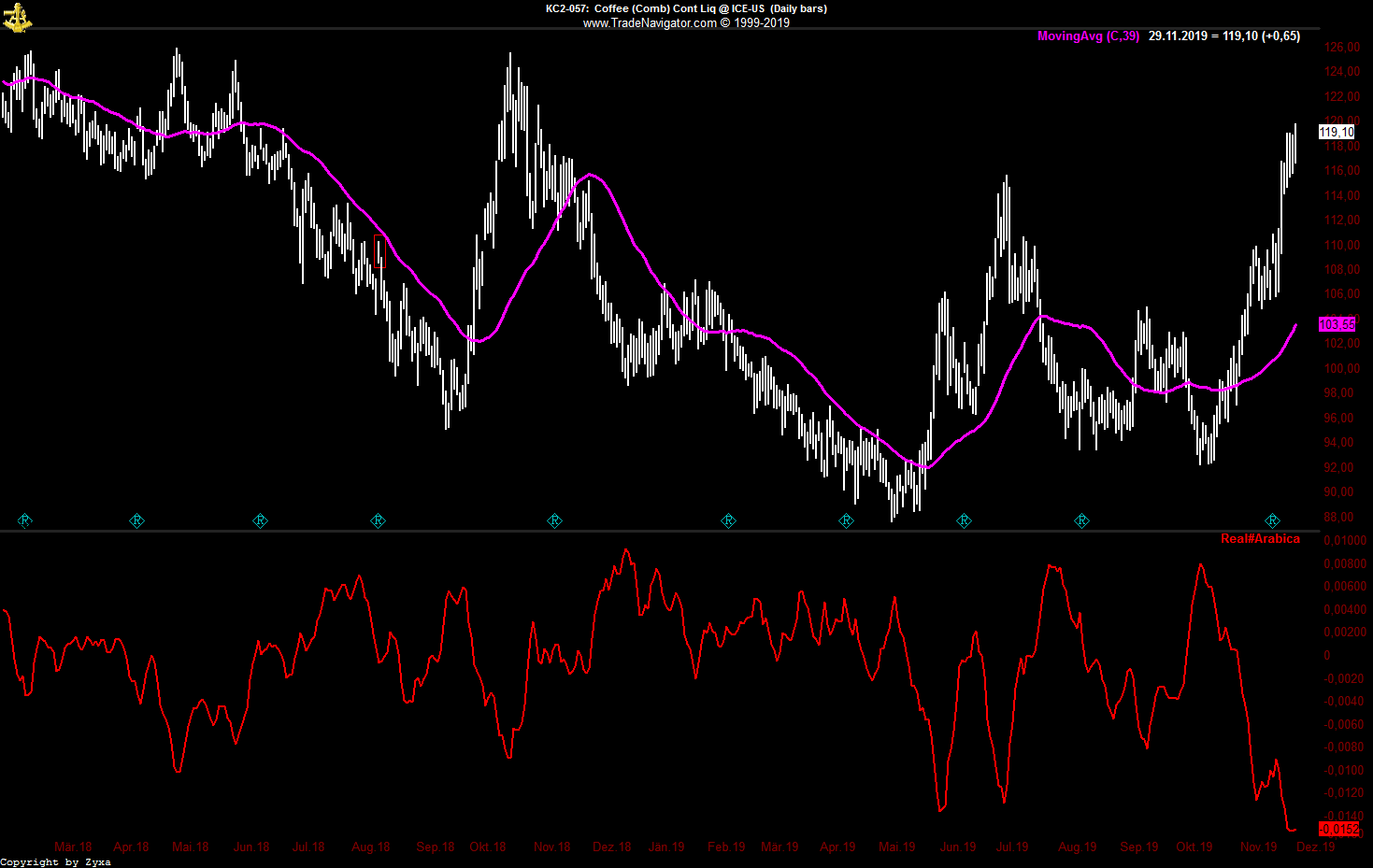Ich wüsste zum Beispiel gerne, was Du über Kaffee denkst:  charttechnisch würde ich sagen "halten", mein Bauchgefühl sagt mir aber "Gewinne mitnehmen" ...