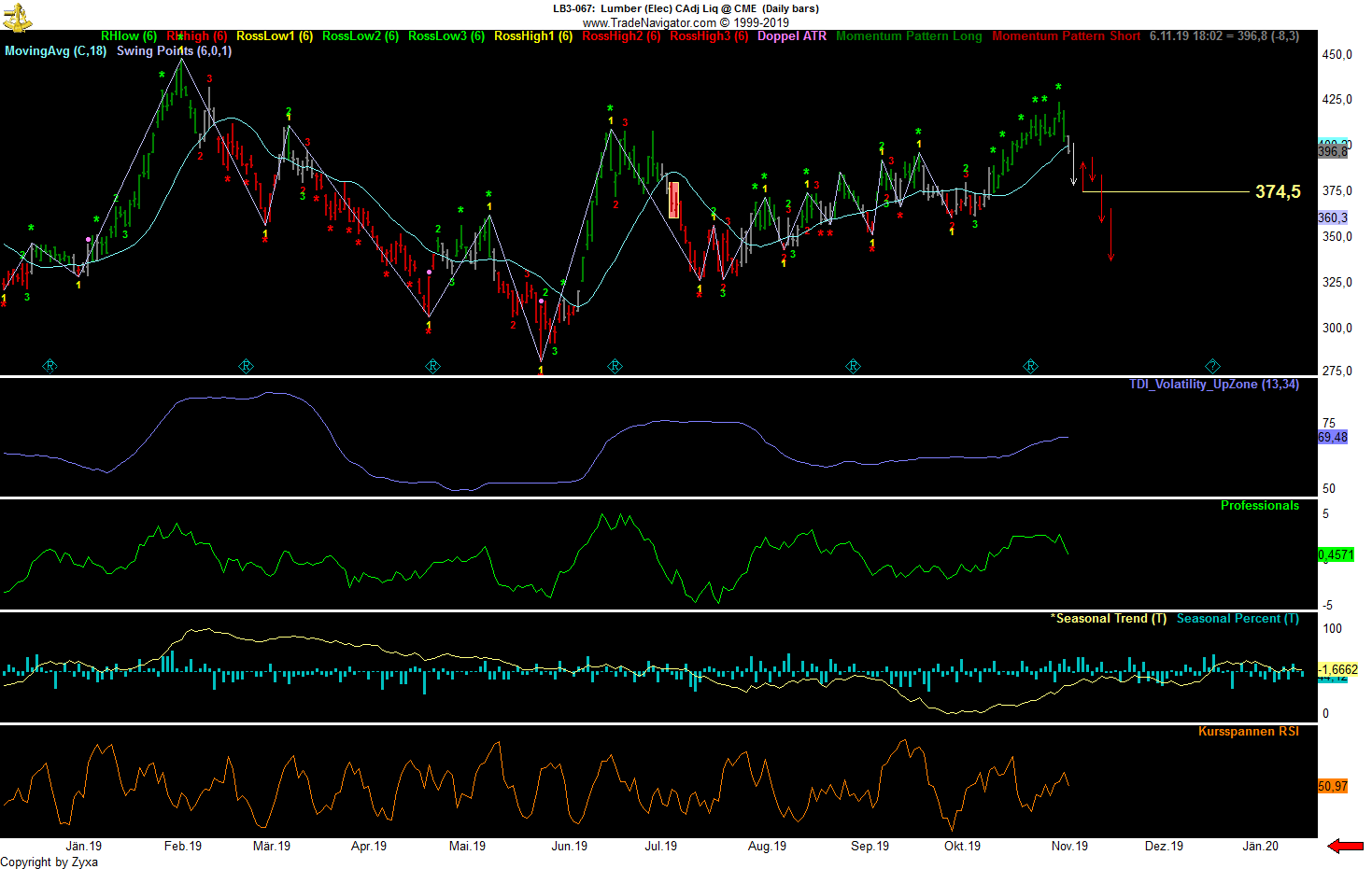 Entry liegt am Tageshoch -1 des Ross-Hooks......der SL liegt einen Tick unterhalb von Punkt 3, jedoch erst ab Mitternacht (Vola Ausstopper Vermeidung wegen FED heute)