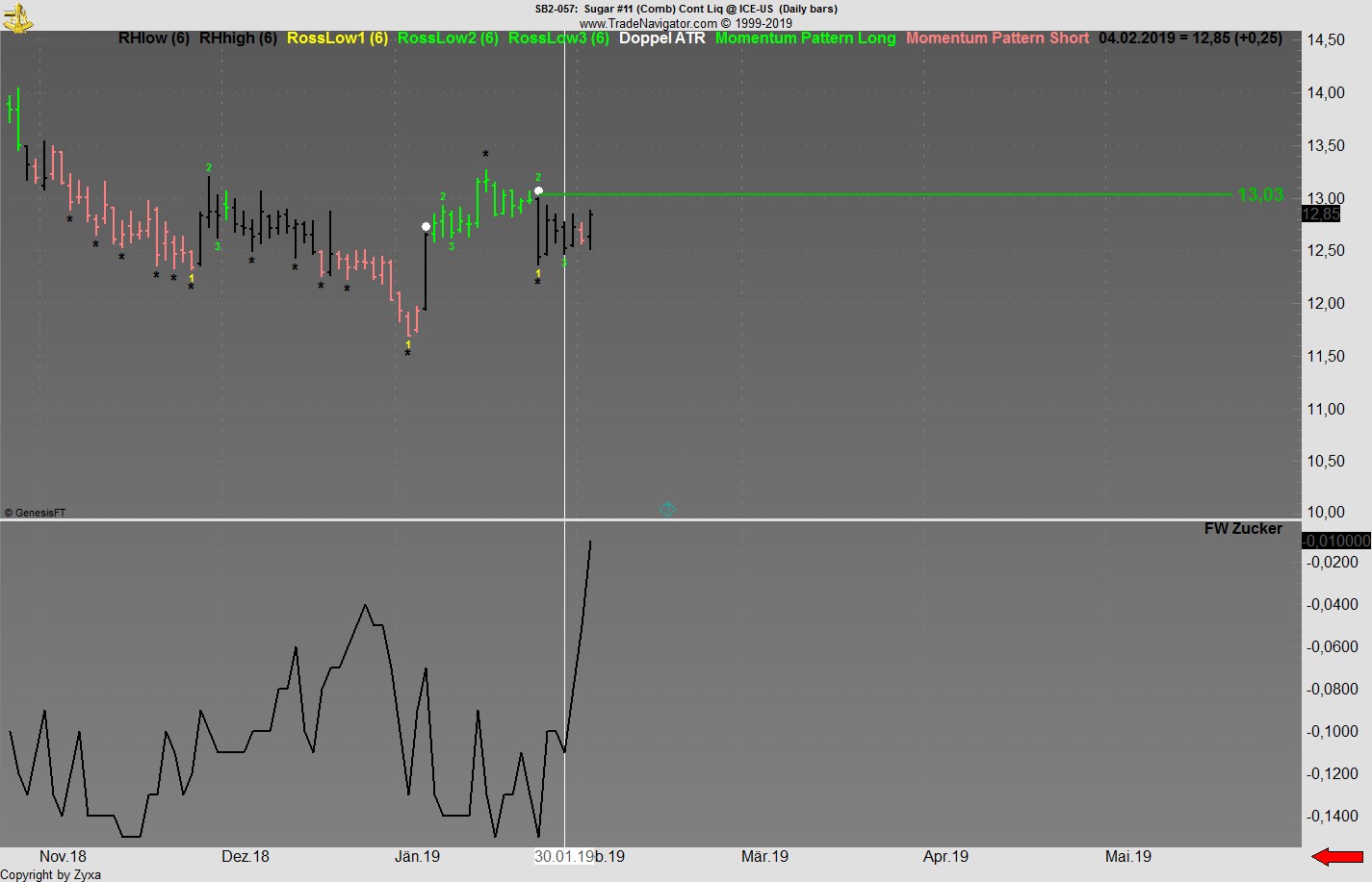 Entry liegt einen Tick unterhalb der Pattern....SL 1 Tick oberhalb der Pattern...Kursrisiko 2,6 %