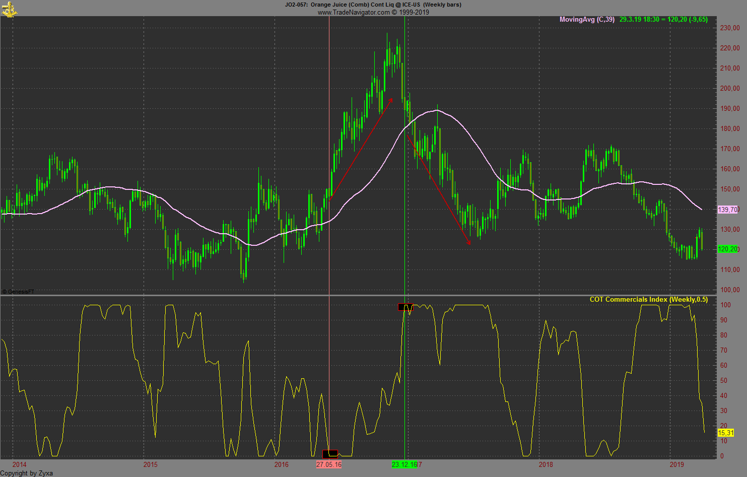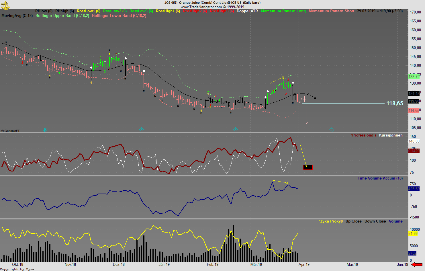 Fundamentale Umbewertungen eines Marktes erkennt man daran, dass sich bei tiefen Preisen eine Prämie entwickelt. Das ist der Grund warum sich Williams nicht um fundamentale Daten groß kümmert. Genau diese Prämie habe ich bei O-Saft und auch bei Sojamehl nicht gesehen.