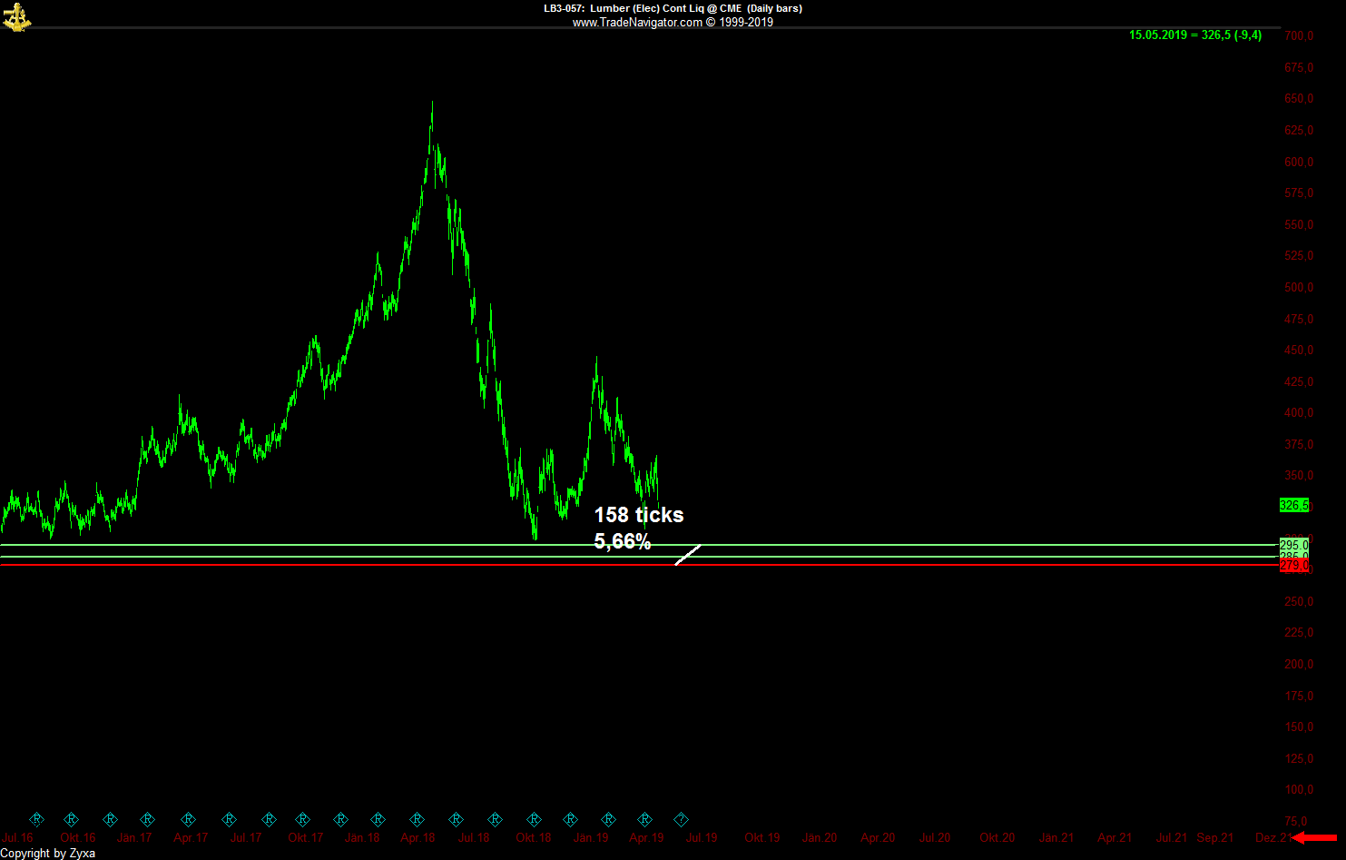 Trend ist down, also vorweg gleich mal halbes Risiko.....P 0,5
