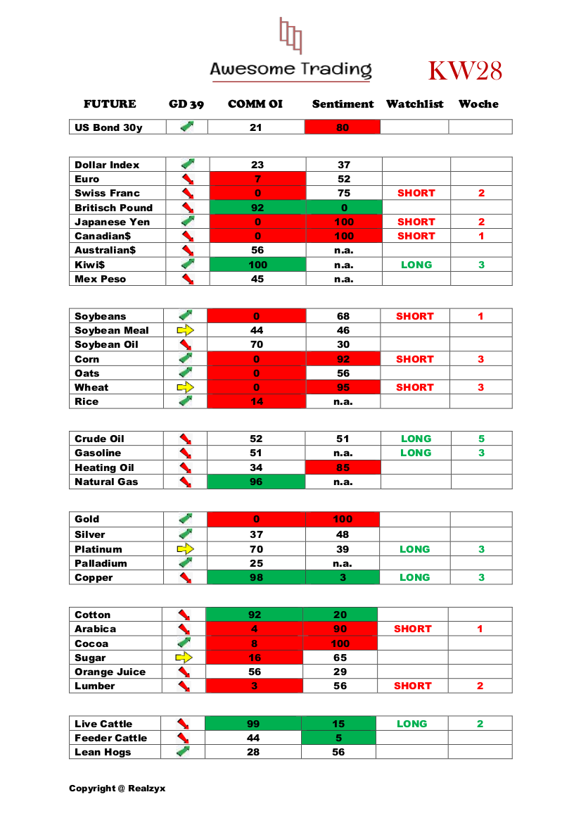 Im Beispiel Sojabohne haben wir laut Cot Report ein Short Signal.
