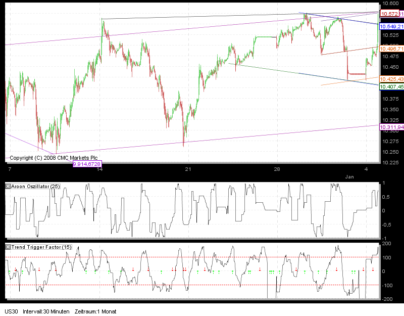 Das ist er nun der Jahreschart 2009 und was können wir daraus lernen!? Wer hätte Ende 08 gedacht, dass wir ein Jahr später wieder über 10 000 Punkten notieren? Es deutet darauf hin, dass der Dow sich in Zukunft im alten Abwärtskanal "aufhalten" wird. Da sollte man auf jeden Fall ein Auge drauf haben. Entweder wir starten weiter durch enden in der Gegend um 11.300 Punkten oder wie geben erst ab und landen bei 9700. Nervenstarke könnten jetzt eine Long-sowie eine Shortorder in den Markt setzen und mit einem großzügigen SL versehen. Wer sich aber etwas mehr im Griff hat, sollte erst investieren wenn der Dow sich einer der beiden Trendlinien nähert. Wenn Der Dow im Trendkanal bleibt wird es wohl viele Einstiegssignale in beide Richtungen geben.
