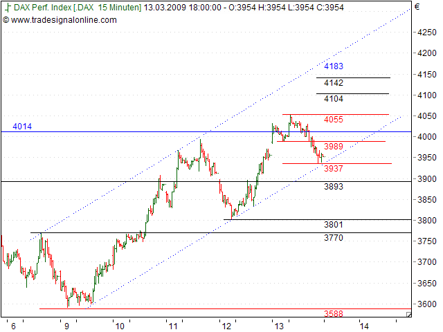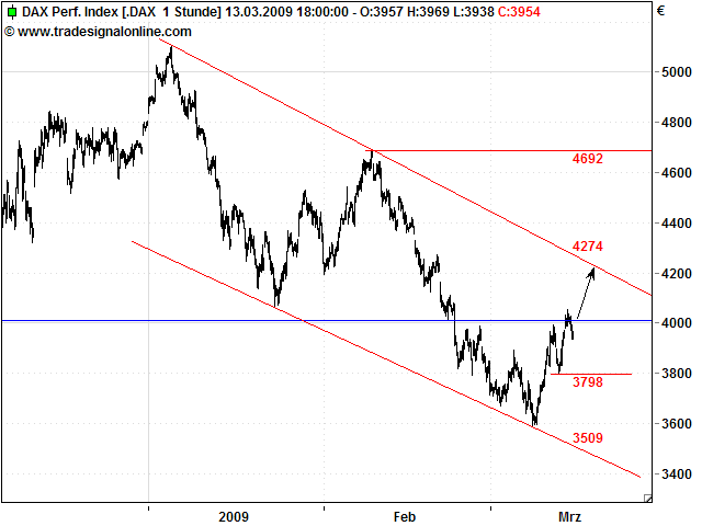 INDIZES 12.3.09 Dow Jones 7.170 8,7% DAX 3.956 7,1% Nikkei 7.569 5,5% Euro/US-Dollar 1,290 1,6% Euro/Yen 126,5 2,6% 10-Jahre-US-Anleihe 2,89% 0,1 Umlaufrendite Dt 2,85% 0,0 Feinunze Gold USD $922,70 -1,6% Fass Crude Öl USD $47,03 7,8% Baltic Dry Shipping I 2.201 1,6%