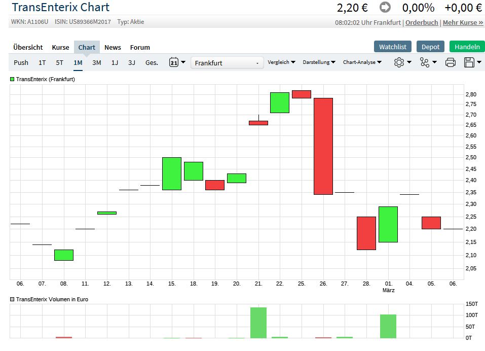 Im Moment bin ich gute 50 % in den Miesen, da ich im oberen Bereich nochmal gut nachgelegt habe. Das tut richtig weh, vor allem da TRXC einer meiner größten Posten in beiden Depots ist.