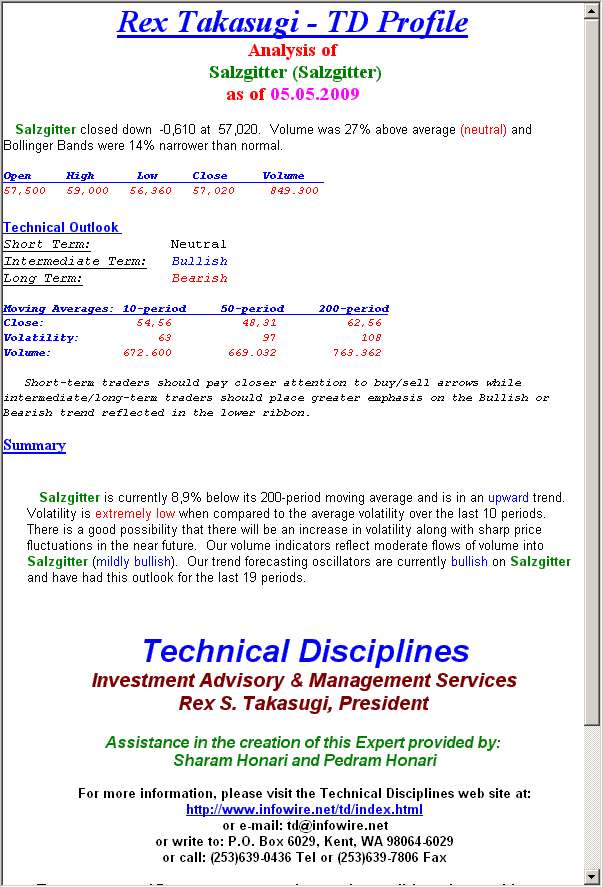 This commentary and Expert are not recommendations to buy or sell, but rather a guideline to interpreting the indicators and chart patterns. This information should only be used by investors who are aware of the risk inherent in securities trading. Investors are further advised that successful investing is more art than science and, therefore, no strategy, chart, graph, system, method, formula, theory or philosophy can guarantee profitable results. Investors should understand that any security investment involves a degree of risk. The facts, information, data, indicators and charts presented have been obtained from sources believed to be reliable, but their accuracy and completeness cannot be guaranteed. Before making specific investments, further investigation and confirming analysis with other indicators is recommended. Equis and Technical Disciplines accepts no liability whatsoever for any loss arising from any use of this expert or its contents.