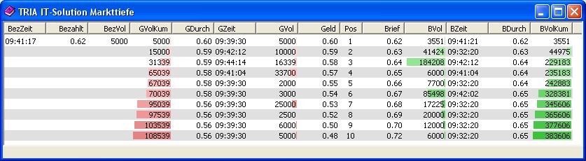 Es scheint offensichtlich, dass jemand, wie schon vor 11 Tagen mit den 180.000 Stück bei 75 und später bei 70 Cent, die Aktie weiter nach unten treiben möchte. Heute hatten wir eine ebenbürtige Stückzahl bei etwa 67 Cent im Ask und dann, als der Kurs auf bis zu 56 Cent absackte, wurde dieser Block auf die Gegend um 60 verschoben. Man konnte bei der Umgruppierung regelrecht zusehen – raus bei 66/67/68, rein bei 60/61/62 innerhalb weniger Minuten.