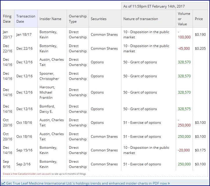 Dec 14/16 Sep 15/16 Bottomley, Kevin Direct Ownership Common Shares 10 - Disposition in the public market -20,000 $0.175