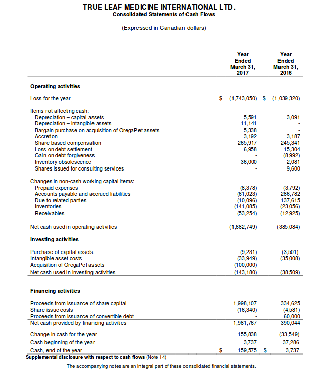 bei True Leaf Pet und der Finanzierung von True Leaf Medicine ist man voll auf Kurs.