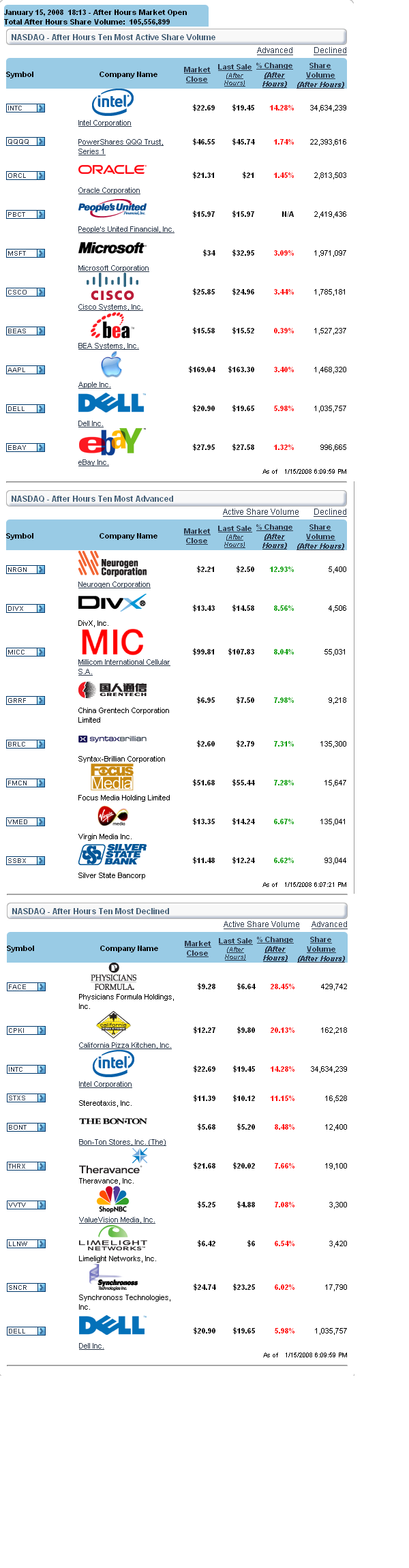 NASDAQ After hours