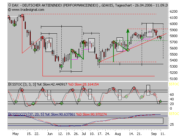| Berechnungsgrundlagen |  | | Open | v. 11.09.2006 | 5774,31 | | High | v. 11.09.2006 | 5800,71 | | Low | v. 11.09.2006 | 5737,20 | | Close | v. 11.09.2006 | 5798,46 |