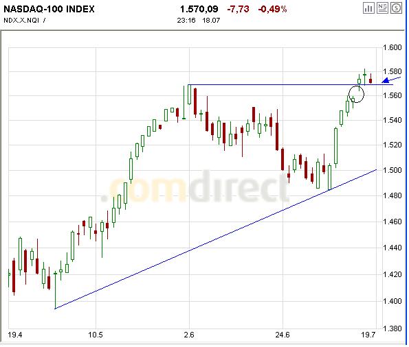 Im Blick steht am Vormittag der ZEW-Index für Juli, Volkswirte rechnen mit einem Anstieg des Index auf 22,0 nach zuvor 19,5 Punkten. Im weiteren Tagesverlauf könnte eine Reihe von amerikanischen Unternehmenszahlen Aufmerksamkeit auf sich ziehen, unter anderem legen Johnson & Johnson, Ford, Yahoo!, Intel und Motorola Quartalsergebnisse vor.