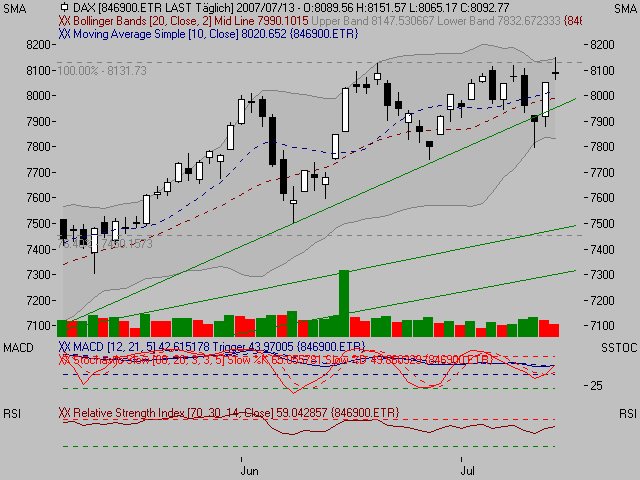 ![]() Markus Koch 13. Juli 2007 Kaum zu glauben, aber wahr: Nach der Rekord-Rallye am Donnerstag setzte die Wall Street am Freitag noch eins drauf. Sowohl die Blue Chips als auch der S&P-500-Index schlossen auf einem neuen Allzeithoch. Dabei hatte es am Morgen nicht so ausgesehen, als könnten die Bullen durchhalten. |