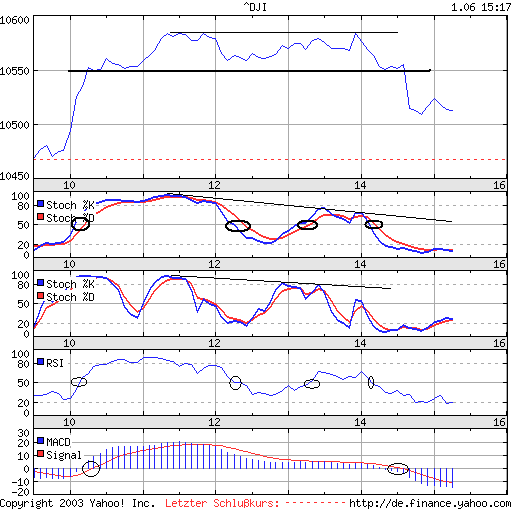 Widersprüchliche Signale von Konjunkturseite haben am Dienstag an Wall Street zu einer Achterbahnfahrt und schließlich zu Abgaben geführt. Es war der erste Handelstag der Woche nach dem ”Memorial Day” am Montag. Der Dow-Jones-Index für 30 Industriewerte verlor 0,7 Prozent oder 75 auf 10.467 Punkte. Der S&P-500 verringerte sich um 0,6 Prozent oder 7 auf 1.192 Stellen. Der Nasdaq-Composite ging um 0,4 Prozent oder 8 Punkte niedriger bei 2.068 Zählern aus dem Handel.