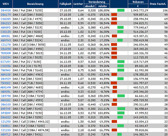 Dieser kräftige Aufschwung hätte zu einer Fortsetzung des laufenden Aufwärtstrends im DAX geführt, sowohl im Wochenchart, als auch im Tageschart, das "Startsignal" für eine neue Trendentfaltung wäre letzte Woche Mittwoch gegeben worden. Mit einem Tageshoch bei 5.138 Indexpunkten notiere der DAX aktuell auf einem Niveau, welches er letztmalig im April 2002 markiert habe. Somit bewege sich das deutsche Börsebarometer auch auf einem Kursniveau, innerhalb dessen und darüber keine wirklich sinnvollen Widerstände herleitbar sind. Sehe man sich den Kursverlauf für sich genommen an, ließen sich aktuell keine Indizes dafür herleiten, dass der Markt unmittelbar vor einem durchgreifenden Richtungswechsel stehet