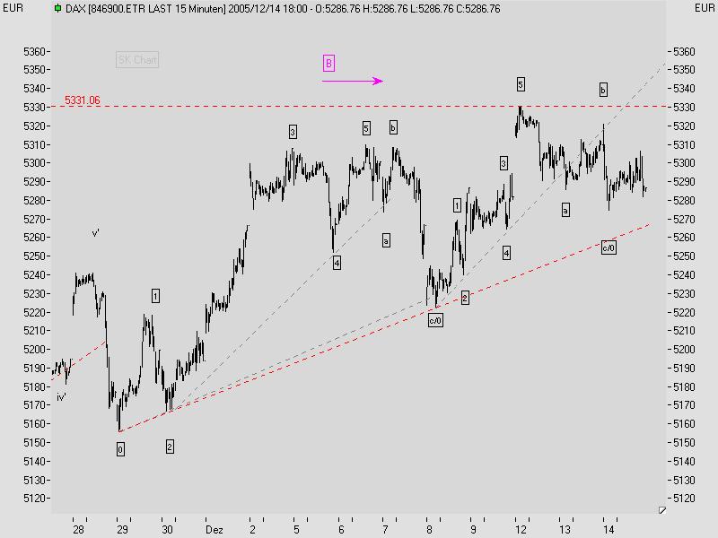 Kommt noch was nach oben. Hatte gestern schon vermutet dass ich in der Zählung was übersehen habe. Stimmte auch, der Fünfer war fertig - im 15er Chart zu erkennen. Nur schnell die Kopie des Entwurfs, der Trend stimmt aber die Ordnung der Zählung muss noch korrigiert werden. Morgenf rüh macht der hebbie dann die komplette fassung ins Opening ... ;o)