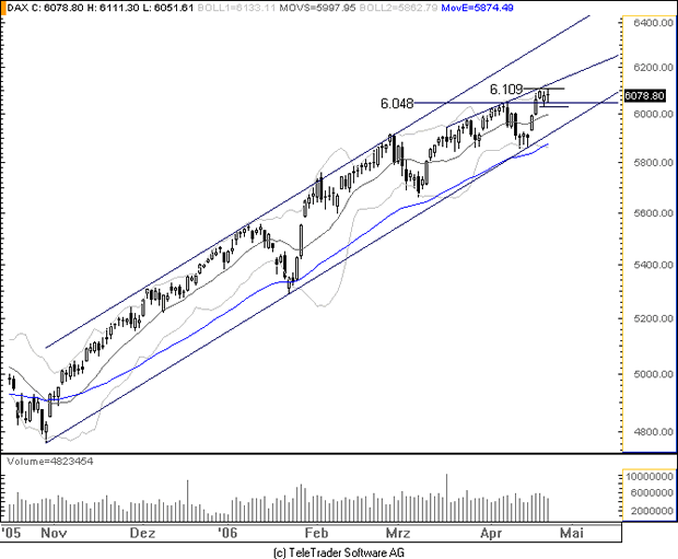 Auch wenn es lange Zeit niemand so richtig wahr haben wollte, so befinden sich die internationalen Rentenmärkte grundsätzlich in der Defensive. Nach Jahrzehnten mit fallenden Zinsen haben die Renditen in den vergangenen Wochen deutlich angezogen. Hintergrund sind die Auswirkungen der laxen Geldpolitik der vergangenen Jahre, die nun zu steigenden Preisen führen. Das zeigt sich nicht unbedingt an den statistisch verzerrten Preisindizes, dagegen überdeutlich bei Rohstoffen, bei vielen Vermögensgütern und nicht zuletzt an den massiv zunehmenden Dollarreserven in Asien. Insgesamt stellt sich die Frage, ob das vielfach gefeierte Wachstum real ist oder lediglich eine Geldillusion. So dürfte es kaum verwundern, daß die Zentralbanken zunehmend restriktiver werden. Sollte sich dieser Prozeß fortsetzen, dürften die Rentenmärkte weiter nach unten laufen. Der Bund-Future steht inzwischen sogar vor dem Bruch des langfristigen Aufwärtstrends, zumindest gemessen am generischen Kontrakt. Im frühen Handel liegt der Bund-Future in einer technischen Gegenreaktion auf die Kursverluste vom Dienstag mit einem Plus von zehn Stellen bei 115,35 Prozent
