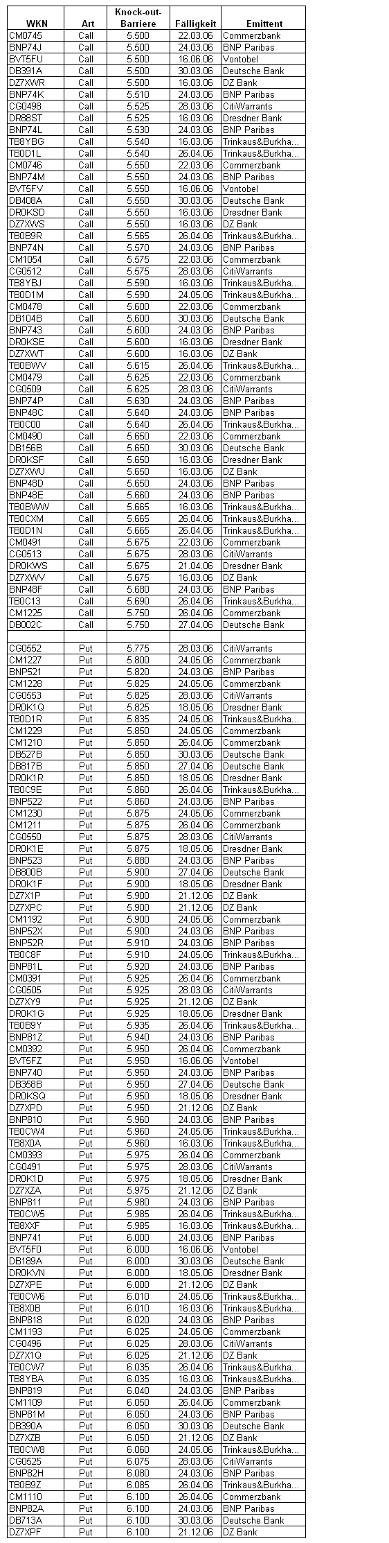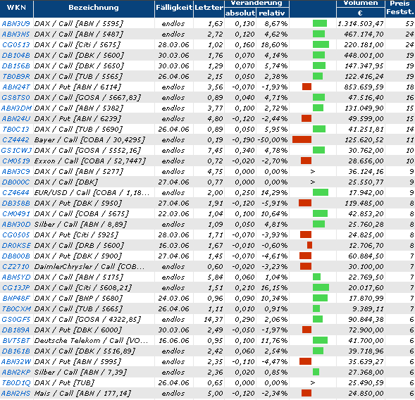 Börsentag auf einen Blick: Gut behauptetAKTIEN DEUTSCHLAND: - GUT BEHAUPTET - Gestützt von leicht positiven Vorgaben und mit neuen Unternehmenszahlen im Fokus werden deutsche Aktien am Montag gut behauptet erwartet. IG Index sah den DAX DAX.ETR am Morgen bei 5.738 Punkten. Am Freitag hatte der deutsche Leitindex 1,07 Prozent auf 5.721,46 Zähler verloren. Der US-Leitindex Dow Jones hatte nach Xetra-Schluss gut 20 Punkte zugelegt, was sich laut Händlern aber angesichts der Schlussschwäche relativiert. Der DAX-Future hatte noch 8,5 Zähler zugelegt. Im Fokus stehen die Geschäftszahlen der DAX-Unternehmen Bayer BAY.ETR und Linde LIN.ETR.