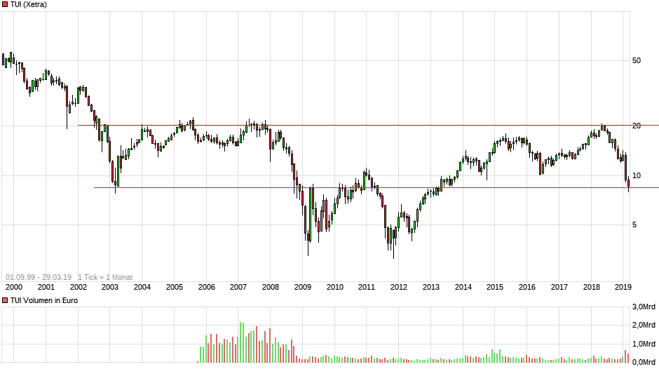Tui erwartet für das bereinigte EBITA im laufenden Geschäftsjahr 2018/19 nun einen Rückgang um 17 Prozent beim EBITA, sollte das Flugverbot bis Mitte Juli dauern, ausgehend vom Vorjahresniveau von 1,18 Milliarden Euro. Sollte das Flugverbot bis Ende September andauern, dürfte das bereinigte EBITA um bis zu 26 Prozent einbrechen.