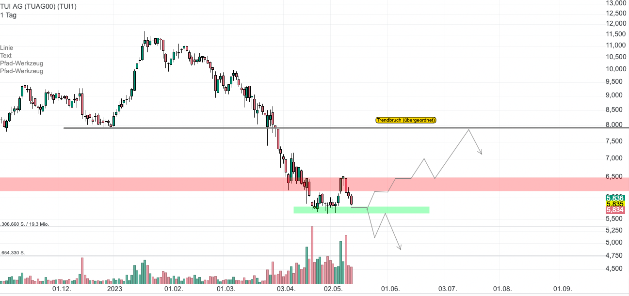 Wir sind vom Tief aus (bei ca. 5,77€) in sehr kurzer Zeit, auf weit über 6€ gestiegen. Jetzt ist erstmal mit den Q-Zahlen die Phantasie raus und wir korrigieren etwas. Kurzfristig wird das Umfeld und die Nachrichtenlage treibend sein (positiv oder negativ). Solange Tui nichts negatives bringt, sollte es langfristig aufwärts gehen. Das Umsatzstarke Sommerquartal steht an und zu den Zahlen kommt auch wieder Phantasie rein. Zudem verringert sich mit den Rückzahlungen die Belastung aus den Finanzierungskosten was wir dann sehen werden. Auch wenn man gerne von der Unternehmensführung konkretere Aussichten hören wollte, was sollten sie den sagen? Ich würde mich auch wage halten und nicht festlegen, um später ev. korrigieren zu müssen. Natürlich gibt es Institutionelle die günstiger einsteigen möchten, aber es dürfte genügend geben die höhere Kurse für ihren Bestand brauchen. Die Belastungen/Auswirkungen durch den Krieg sind überall zu sehen (zum Teil übertrieben, weil sich manche mit dem Argument nur die Taschen füllen). Trotzdem werden viele Urlaub machen und lt. Tui scheint es bei den Buchungen zu laufen.