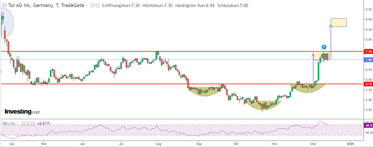 Nun stehen wir wieder an dem schonmal getesteten Wiederstand im Bereich der 7,30 €. Wird dieser vor dem Verfallstag noch durchbrochen könnte das eine neue Dynamik auslösen und den Kurs schnell in Richtung 8 € bewegen.