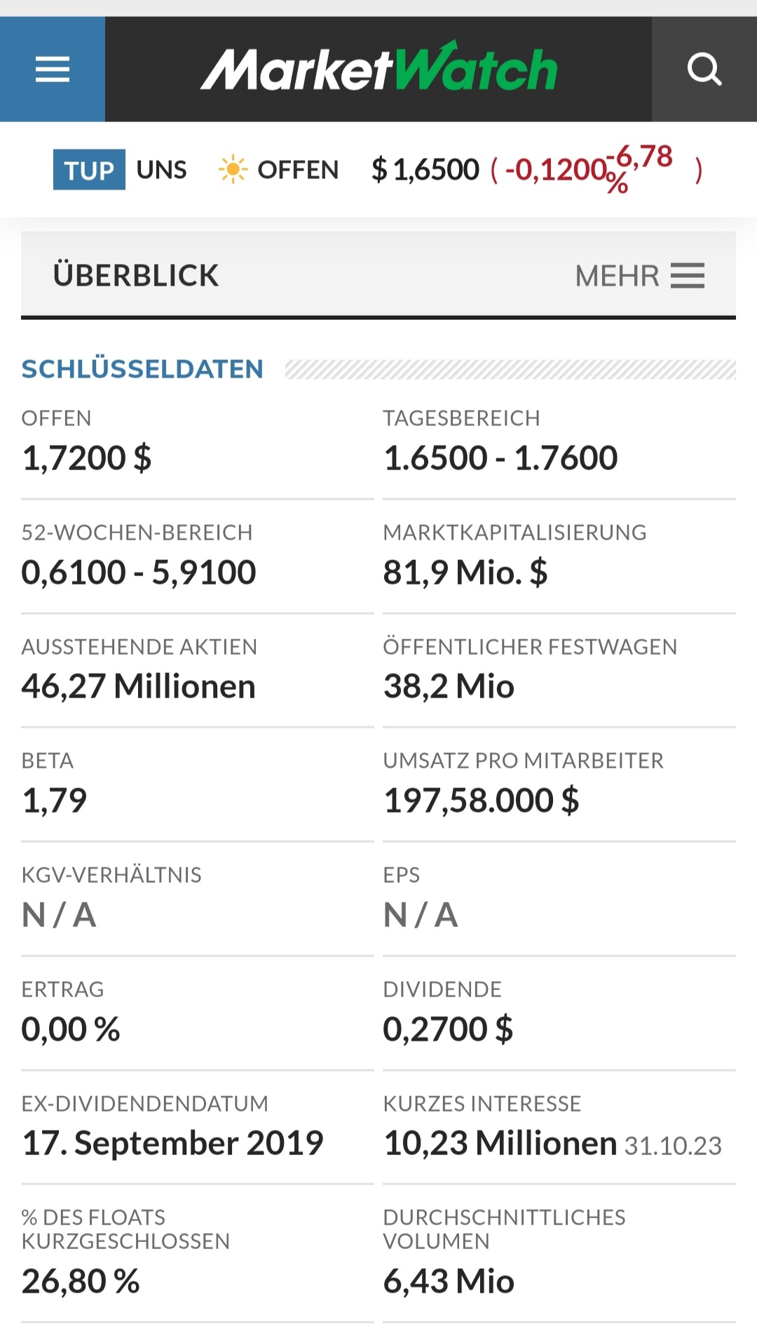 Und einmal mehr dieses leidige Thema bei Tupperware. Es wurde hier ja bereits häufig und sehr kontrovers darüber diskutiert, was das Ausbleiben der Veröffentlichung der Unternehmensdaten zu bedeuten hat. Man kann darüber sicherlich auch weiterhin unterschiedlichste persönliche Meinungen haben und das interpretieren wie man möchte. Letzen Endes sind es aber immer harte Zahlen, Daten und Fakten die über den Erfolg oder Misserfolg eines Unternehmens entscheiden. Natürlich spielen Phantasie, Beliebtheit und Verbreitung einer Marke eine große Rolle, wenn Anleger hier einsteigen und durch Zukäufe den Wert nach oben treiben. Auch haben wir koordinierte Aktionen von z.B. Reddit gesehen, die sich sehr positiv, aber leider nur kurzfristig ausgewirkt haben. Am Ende ist es, ganz nüchtern betrachtet, aber die tatsächlich vorhandene Kapitaldecke, Umsatz und Gewinnprognose, die die Zukunft eines Unternehmens steuert. Für mich bedeutet das jetzt erneut verzögerte Veröffentlichen der Q-Zahlen 2023 eigentlich das Ende von Tupper. Sie haben es ein dreiviertel Jahr lang nicht geschafft hier Klarheit für sich selbst und die Anleger zu schaffen und nun erneut nicht. Ich denke das neue Management ist sich sehr schnell darüber klar geworden, wie die Situation wirklich aussieht und ich könnte mir vorstellen, das sie ernsthaft über eine Chapter 11 Option nachdenken. Eine Verschleppung der Insolvenz ist auch in den USA strafbar und wahrscheinlich gehen ihnen die Optionen für "geschönte" Q-Berichte aus. Das der langjährige externe Wirtschaftsprüfer bereits ausgestiegen ist, spricht für mich klar für diese These. Entweder steigt hier ein Großinvestor als Retter in der Not ein oder sie gehen pleite und irgendwer kauft den Namen und verkauft seine eigenen Billigprodukte demnächst unter dem Tupper Brand.