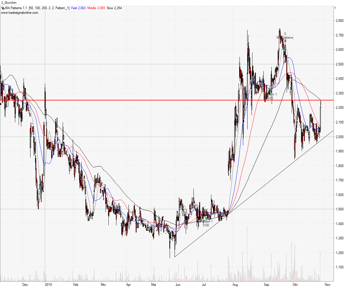 Wie vor einiger Zeit von mir vorhergesagt, ist der Kurs nun aus dem neutralen Keil bullish ausgebrochen. Das ist ein sehr gutes Zeichen.