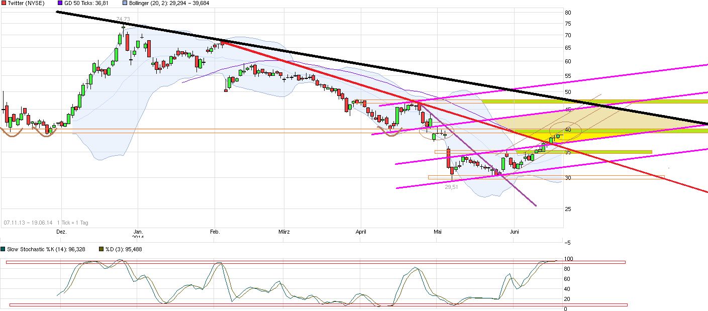 Das kommt mir abwegig vor. Kürzt man alles um den Faktor 10, dann ist es auch noch ambitioniert. Der Kurs würde dann bei 4 Dollar stehen. 4 Dollar plusminus ist für mich daher das langfristige Kursziel für TWTR.