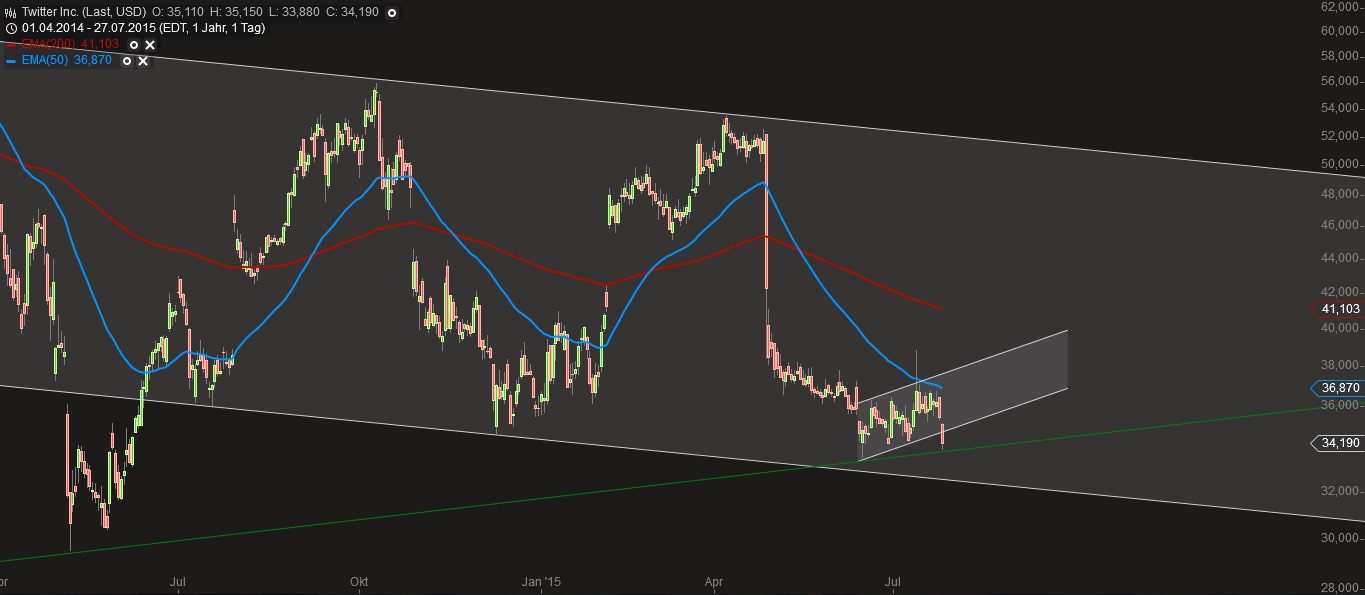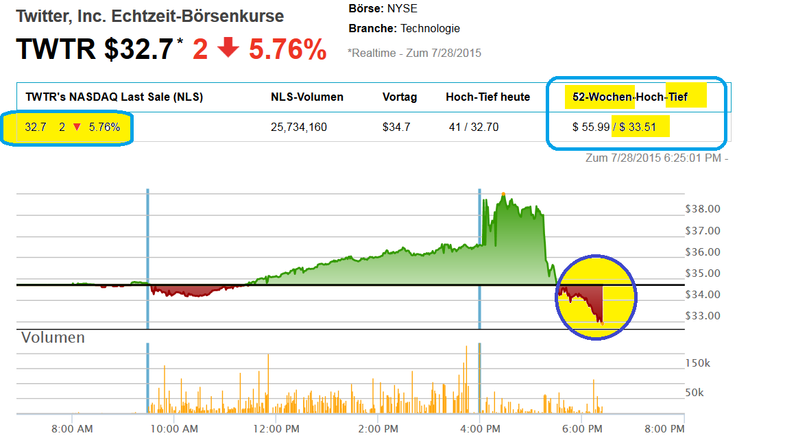 Im abgelaufenen Quartal schoss der Umsatz um 61 Prozent in die Höhe auf 502 Millionen Dollar. Er fiel wie der Gewinn je Aktie vor Sonderposten höher aus als von Experten vorausgesagt. Der Nettoverlust schrumpfte geringfügig auf 137 Millionen Dollar. Fürs Gesamtjahr gab Twitter eine etwas optimistischere Umsatzprognose ab. Demnach wird nun eine Spanne von 2,2 bis 2,27 (bislang: 2,17 bis 2,27) Milliarden Dollar erwartet. (Reuters, 29.7.2015)