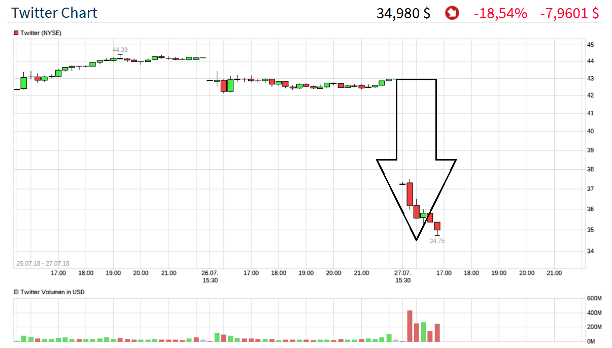 AKTIE IM FOKUS: Twitter stürzen ab - Sinkende Nutzerzahlen enttäuschen Freitag, 27.07.2018