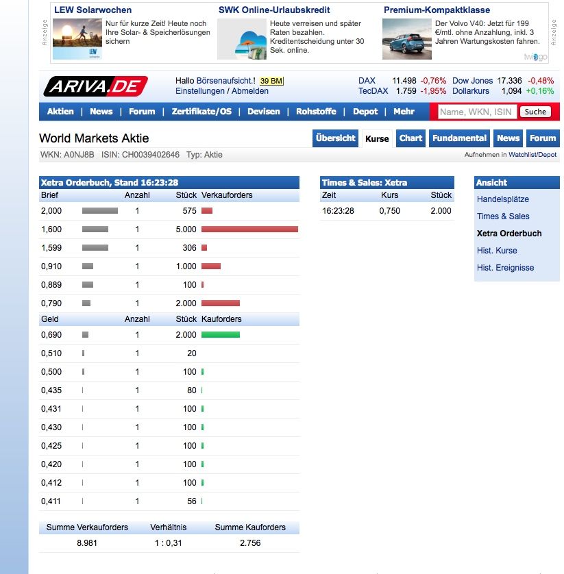 | 1 | World Markets mit top Angebot ! DAX für 1 Punkt | zorrro | zorrro | 02.11.10 14:17 | ||