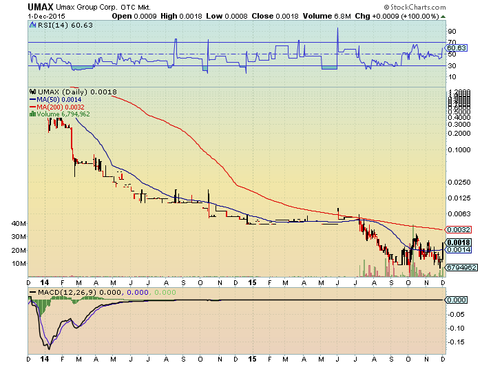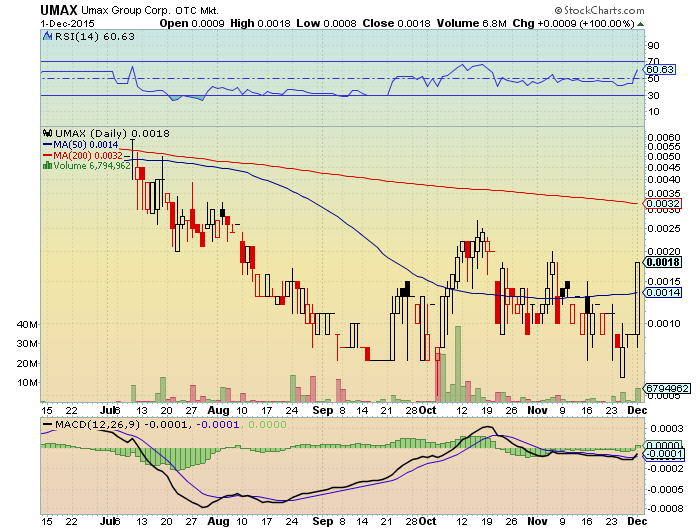 die aktien struktur ist nahezu perfekt für einen 5000% run. warte geduldig auf den start. es wird die nächste GEQU. sehr guter vergleich mit gleichen zielen. OTC QB hoch listung in planung - merger in planung und ein Joint Venture steht im dezember aus. dazu noch nur die hälfte des floats von GEQU die ja bekanntlich vor kurzem von 0007-$ 05 gelaufen ist. und der jenige der GEQU als erstes entdeckt hat ist nun bei UMAX rein und sieht sie als GEQU nachfolger.