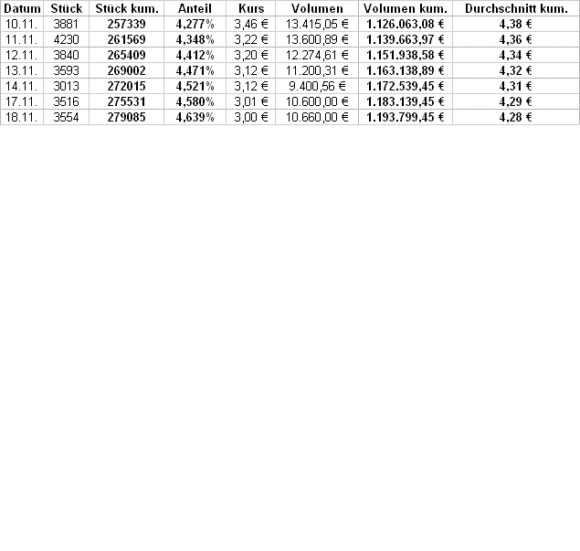 Ich gehe davon aus, das UMS die 55 Cents erreicht, aber nur wegen dem niedrigeren Euro sollte man nicht gleich denken, das es mehr werden. Wäre aus meiner Sicht schon ein Erfolg, wenn man die 55 Cents schafft. Nächstes Jahr sollten bei minimalem Wachstum von 5% und 5% weniger Aktien dann ein EPS über 60 Cents realistisch sein.