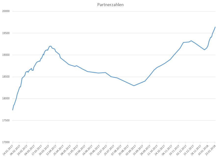 1. Nach meinen Stichprobenbetrachtungen des Branchenbuches lagen die Zuwächse bei den kostenpflichtigen Partnerpaketen in Q4 zwischen 750 und 900. Das wäre ein fast doppelt so hoher Zuwachs wie im letzten Jahr mit ca. +400, was für ein Q4 auch schon ein sehr guter Wert war. Damit ist schon einmal ein sehr wichtiger Grundstein für den Umsatz 2018 gelegt. Anders als bei Werten wie Lotto24 ist bei MyHammer die Preisstruktur so aufgebaut, dass man mit Laufzeitpaketen mit monatlichen Fixgebühren eine recht hohe Planungssicherheit hat und Maßnahmen wie die TV Werbung in 2017 einen lang anhaltenden Effekt haben.