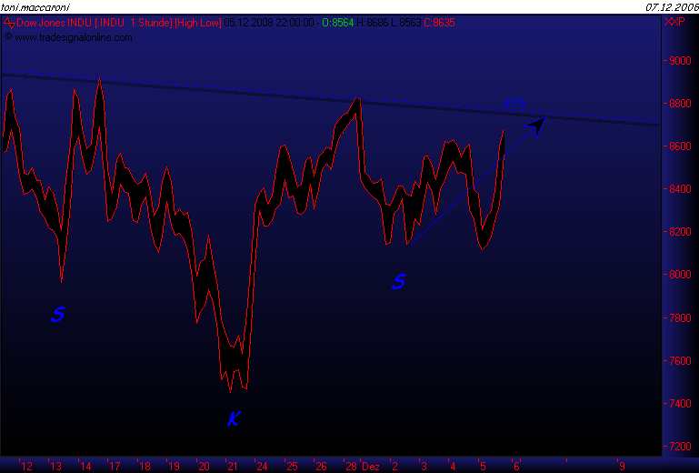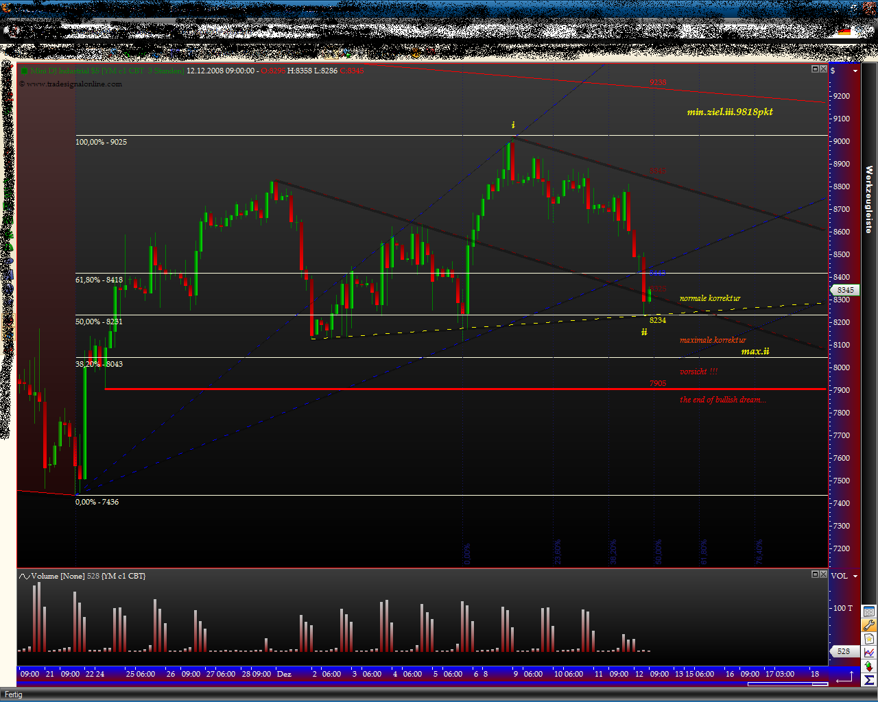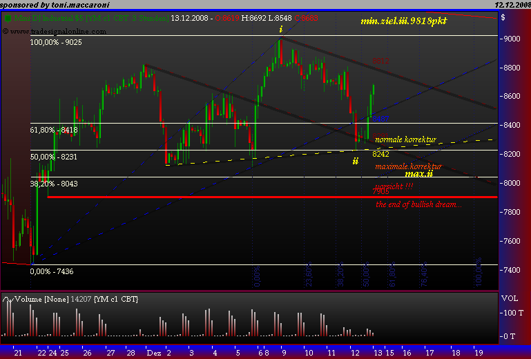 die amifuture kommt nun langsam an einem ausgereizten punkt, sollte sie sich nicht über 8818pkt halten können, so wird der markt bei ersten schwäche anzeichen dies zur einer korrektur nutzen, diese wird im zeit-bereich 18-21 Uhr bei 8570pkt eintreffen...