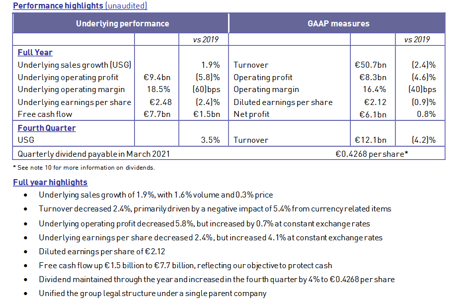 Die Dividende wurde im Jahresverlauf beibehalten und in Q4 um 4% auf 0,4268 €/Aktie erhöht, zahlbar im März 2021.