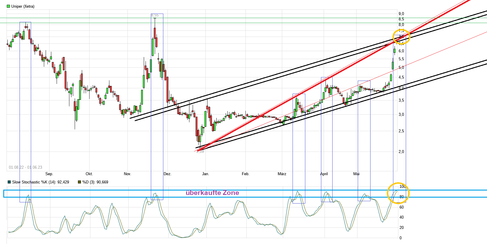 dass es keine brauchbaren Puts auf Uniper gibt, die man einigermaßen sicher kaufen kann. Marktbewertung 44 Milliarden, EBIT in 2022 minus 10 Milliarden. Da helfen die 2 Milliarden Sondergewinne aus den Sicherungsgeschäften auch nicht viel. Zum Ende des Jahres muss der Bund der EU ein Ausstiegsszenario aufzeigen, wofür man allerdings 5 Jahre Zeit hat. 25% darf der Bund behalten. Es kommen also Aktien für 32 Milliarden nach heutigem Kurs auf den Markt. Wer soll die bloß kaufen?
