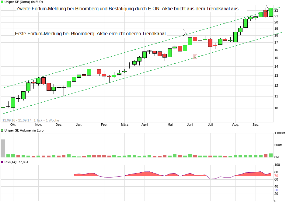 Damit legt Pekka Lundmark 16,18€ als den Uniper-Kurs vor den Übernahmespekulationen fest, was ich definitiv übertrieben finde, denn am Tag der ersten Bloomberg-Meldung lag der Tiefstkurs der Uniper-Aktie etwas über 16,60.