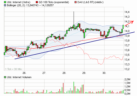 Zudem hat das Unternehmen die bereits vorläufig gemeldeten Zahlen für das Jahr 2011 endgültig bestätigt. Den Umsatz hat man von 1,91 Milliarden Euro auf 2,09 Milliarden Euro erhöht und operativ einen Gewinnanstieg von 271,5 Millionen Euro auf 276,0 Millionen Euro verzeichnet. Für 2012 rechnet United Internet mit einem operativen Gewinn zwischen 243 Millionen Euro und 281 Millionen Euro und einem Überschuss je Aktie zwischen 0,80 Euro und 0,90 Euro