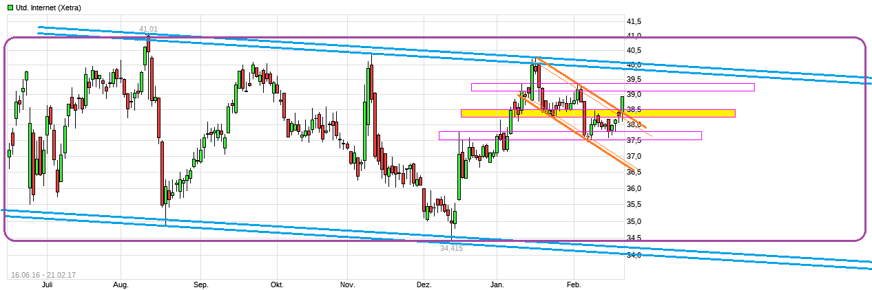 Es muss halt jetzt mal irgendwann entweder fundamentale News oder Kaufempfehlungen geben, die den Kurs erstmal über 38,5 bringen und dann über 40,3 €. Oder irgendein größerer Fondsmanager hat mal den Arsch in der Hose gegen alle Regeln den Kurs in einer guten Phase so stark zu kaufen, dass die 40,3 fallen und sich die Shorties eindecken müssen. Dann kann es ratzfatz in Windeseile bis 46 € durchrennen. UI hat ja noch viel aufzuholen.