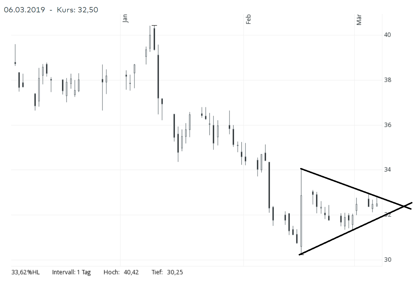 Ich persönlich mache keine Chartanalyen, sondern ich versuche nur zu quantifizieren in wie fern sich das lohnt. Lohnen würde es ggf wenn eine charttechnisch sehr eindeutige Situation eine deutlich höhere Chance als 50% hat, und zwar statistisch nachgewiesen. Oder anders herum, wann kann man eine sichere Handlungsempfehlung ableiten?