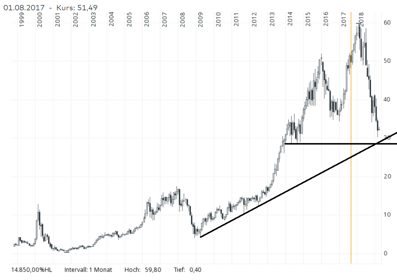 Jetzt hast du mich missverstanden. War keine Kritik an der Analyse selbst, sondern nur die Frage nach dem Schluss, den man ggf daraus ziehen kann. Mir ging es gar nicht um den Mehrwert den ich persönlich daraus ziehen kann, sondern ganz allgemein, aus welcher charttechnisch rel eindeutigen Situation man ganz allgemein eine letztendlich richtige Handelsentscheidung ableiten kann.